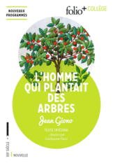 La lecture de L'homme qui plantait des arbres, de Jean Giono, est conseillée pour les classes de 5e. L'édition en Folio+Collège propose un dossier en quatre parties :